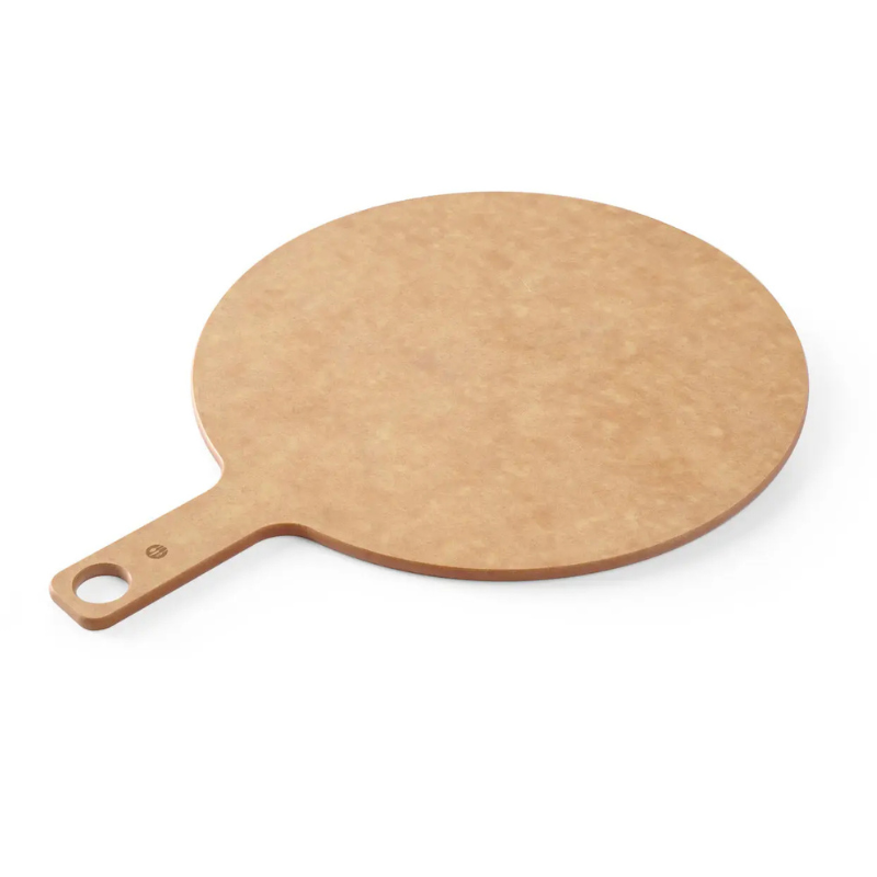 Elegantna deska za pico z ročajem je popoln pripomoček za postrežbo, rezanje ali serviranje pic, sirov in prigrizkov. Izdelana je iz stisnjenih lesenih vlaken, kar ji daje izjemno trpežnost in daljšo življenjsko dobo v primerjavi z navadnim lesom.